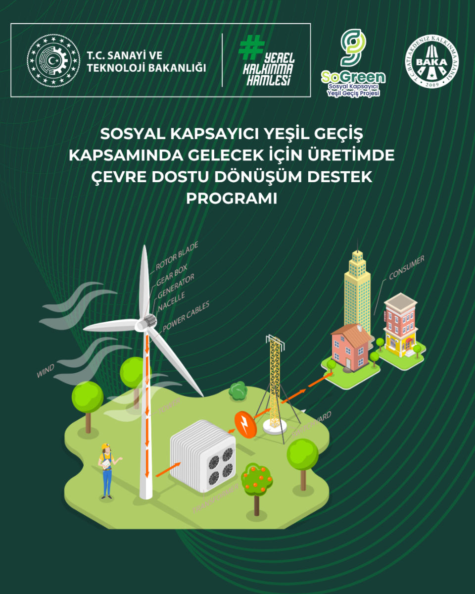 Dünya Bankası finansmanıyla yürütülen Türkiye Sosyal Kapsayıcı Yeşil Geçiş (SoGreen) Projesi kapsamında uygulanan program ile TR61 Düzey 2 Bölgesi’nde (Antalya, Burdur, Isparta) faaliyet gösteren KOBİ’lerin yeşil dönüşüm yatırımlarının desteklenmesi amaçlanmaktadır.