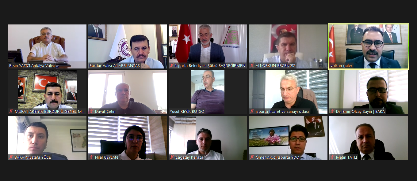 Batı Akdeniz Kalkınma Ajansı 150. Yönetim Kurulu Toplantısı, Antalya Valisi Ersin Yazıcı başkanlığında gerçekleştirildi. Video konferans sistemi üzerinden gerçekleştirilen toplantıya Burdur Valisi Ali Arslantaş, Isparta Valisi Aydın Baruş, Isparta Belediye Başkanı Şükrü Başdeğirmen, Burdur Belediye Başkanı Ali Orkun Ercengiz, Burdur İl Genel Meclisi Başkanı Murat Akbıyık, Antalya Ticaret ve Sanayi Odası Başkanı Davut Çetin, Burdur Ticaret ve Sanayi Odası Başkanı Yusuf Keyik, Isparta Ticaret ve Sanayi Odası Başkanı Mustafa Tutar, BAKA Genel Sekreteri Volkan Güler ve Ajans uzmanları katıldı.