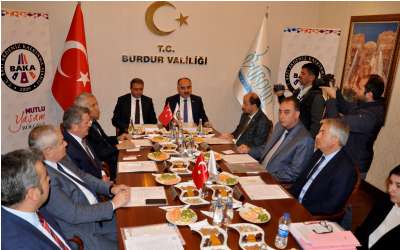 BAKA Yönetim Kurulu’nun Ekim ayı olağan toplantısı Burdur Valiliği’nde yapıldı. BAKA Yönetim Kurulu üyeleri, toplantı öncesinde Burdur Valisi Hasan ŞILDAK’ı makamında ziyaret etti. Isparta Valisi Şehmus GÜNAYDIN başkanlığındaki BAKA Yönetim Kurulu toplantısına; Burdur Valisi Hasan ŞILDAK, Isparta Belediye Başkanı Yusuf Ziya GÜNAYDIN, Isparta İl Genel Meclis Başkanı Ali BOLAT, Burdur İl Genel Meclis Başkanı Muzaffer BAĞCI, Antalya Ticaret ve Sanayi Odası Başkanı Davut ÇETİN, Burdur Ticaret ve Sanayi Odası Başkanı Yusuf KEYİK