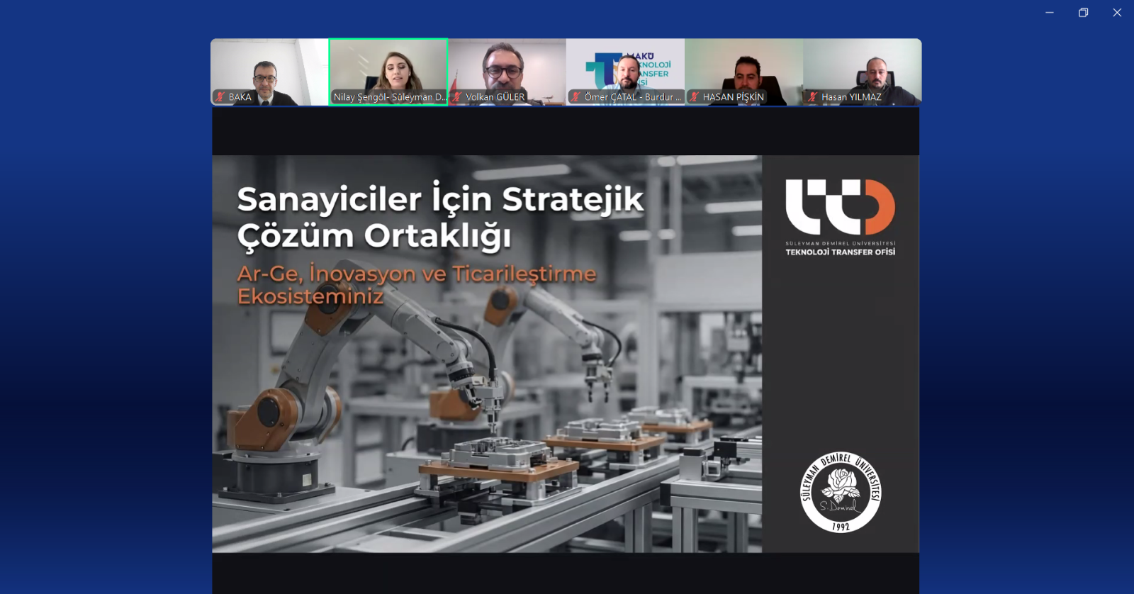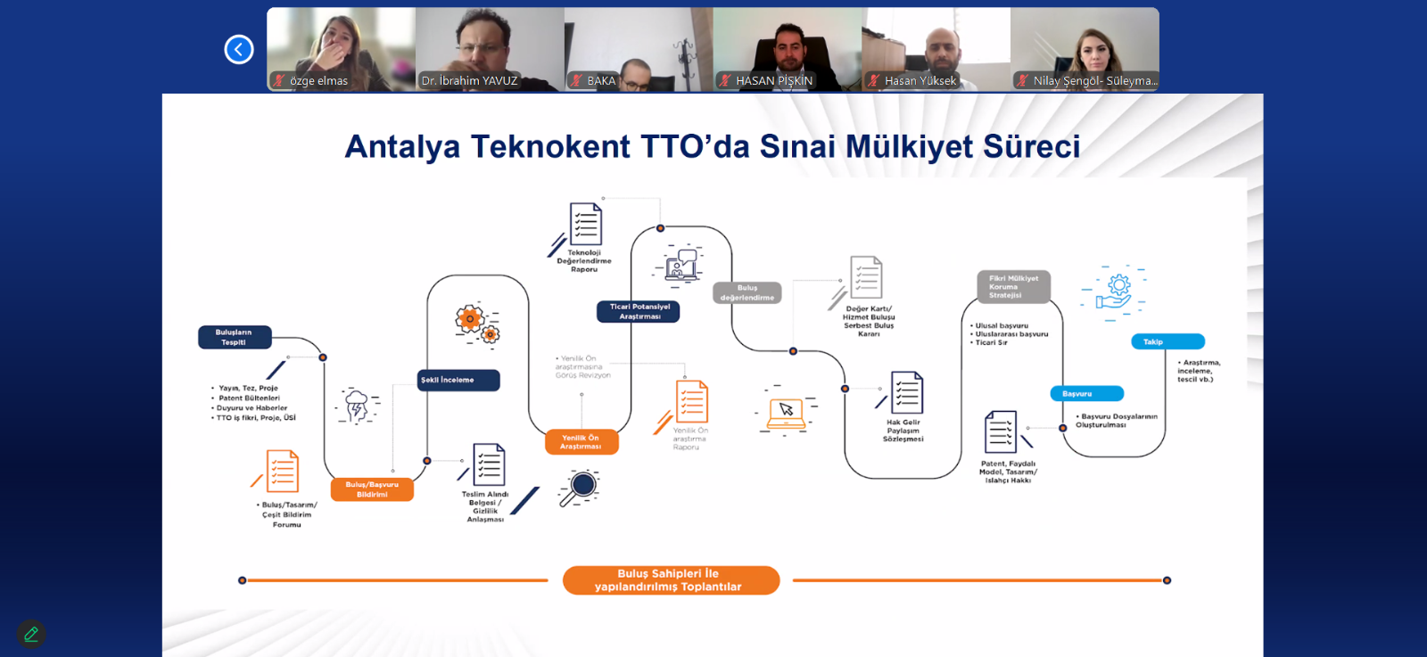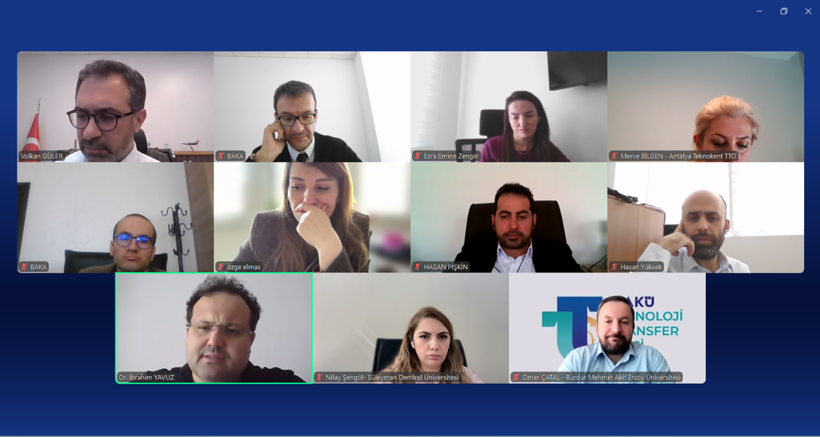 TR61 Bölgesi Teknoloji Transfer Ofisleri (TTO) İş Birliği ve Eş Güdüm Toplantısı, üniversite-sanayi iş birliğini güçlendirmek ve bölgesel kalkınma ivmesini artırmak amacıyla çevrim içi olarak gerçekleştirildi. Toplantıya Batı Akdeniz Kalkınma Ajansı Genel Sekreteri Volkan Güler ve Antalya Teknokent Genel Müdürü Dr. İbrahim Yavuz ile birlikte; Süleyman Demirel Üniversitesi (SDÜ) TTO’dan Nilay Şengöl, Isparta Uygulamalı Bilimler Üniversitesi (ISUBÜ) TTO’dan Hasan Yılmaz, Mehmet Akif Ersoy Üniversitesi (MAKÜ) TTO’dan Ömer Çatal, Alanya Üniversitesi TTO’dan Özge Elmas Çeçen, Alanya Alaaddin Keykubat Üniversitesi (ALKÜ) TTO’dan Hasan Pişkin ve Antalya Teknokent TTO’dan Merve Bilgen Çıkdın katılım sağladı.