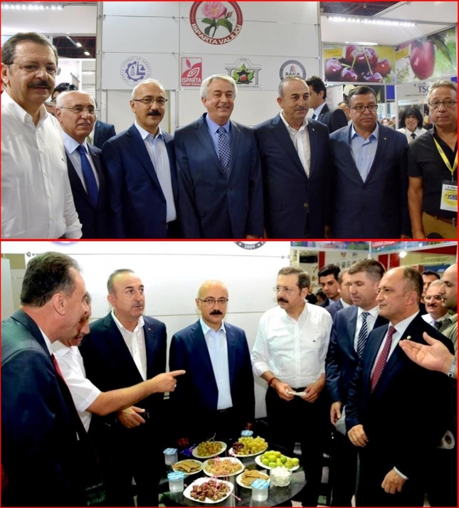 Dışişleri Bakanı Mevlüt ÇAVUŞOĞLU ve Kalkınma Bakanı Lütfi ELVAN ile TOBB Başkanı Rifat HİSARCIKLIOĞLU, ‘Sakin Şehir’ Eğirdir’in standını da ziyaret ederek elmanın tanıtımına katkıda bulundu. Dışişleri Bakanı ÇAVUŞOĞLU, kendi sosyal medya hesaplarında Eğirdir elmasıyla verdiği pozu paylaştı.(18.09.2017)