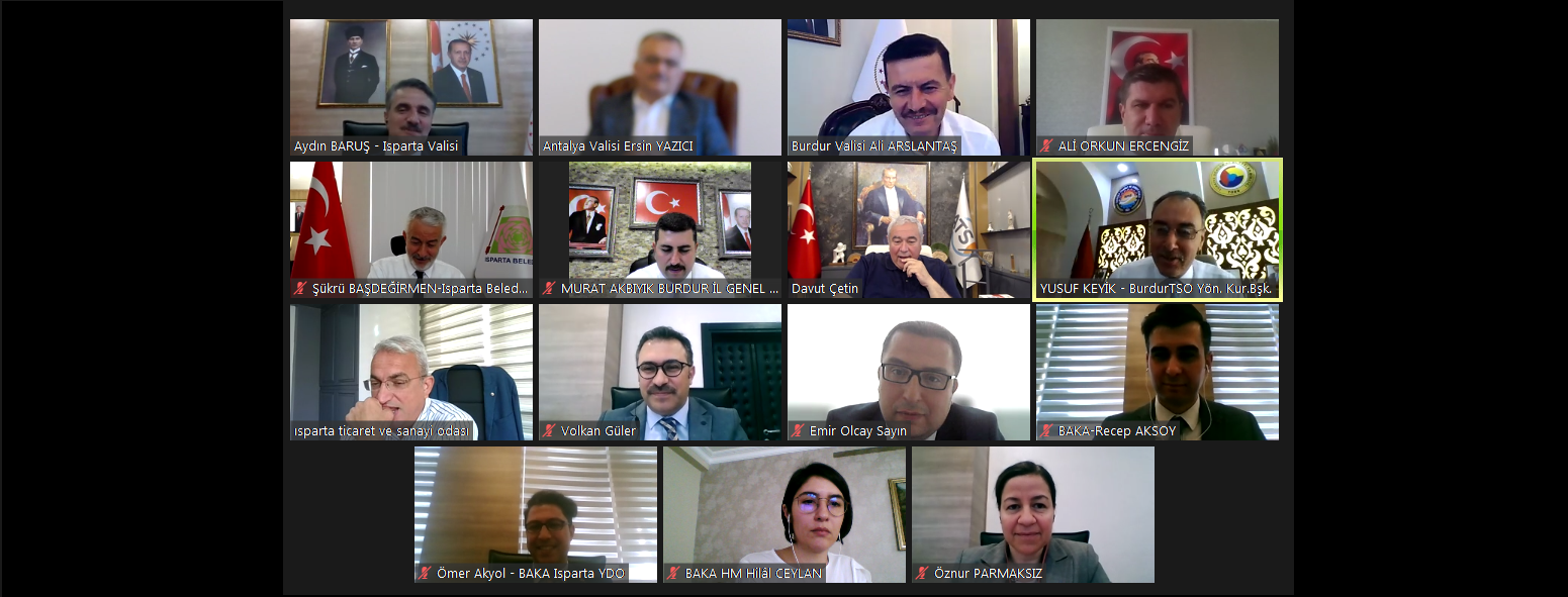 Batı Akdeniz Kalkınma Ajansı Haziran ayı Olağan Yönetim Kurulu Toplantısı, Isparta Valisi Aydın Baruş başkanlığında gerçekleştirildi. Video konferans sistemi üzerinden gerçekleştirilen 148. Yönetim Kurulu Toplantısı’na Antalya Valisi Ersin Yazıcı, Burdur Valisi Ali Arslantaş, Burdur Belediye Başkanı Ali Orkun Ercengiz, Isparta Belediye Başkanı Şükrü Başdeğirmen, Burdur İl Genel Meclisi Başkanı Murat Akbıyık, Antalya Ticaret ve Sanayi Odası Başkanı Davut Çetin, Burdur Ticaret ve Sanayi Odası Başkanı Yusuf Keyik, Isparta Ticaret ve Sanayi Odası Başkanı Mustafa Tutar, BAKA Genel Sekreteri Volkan Güler ve BAKA uzmanları katılım sağladı.