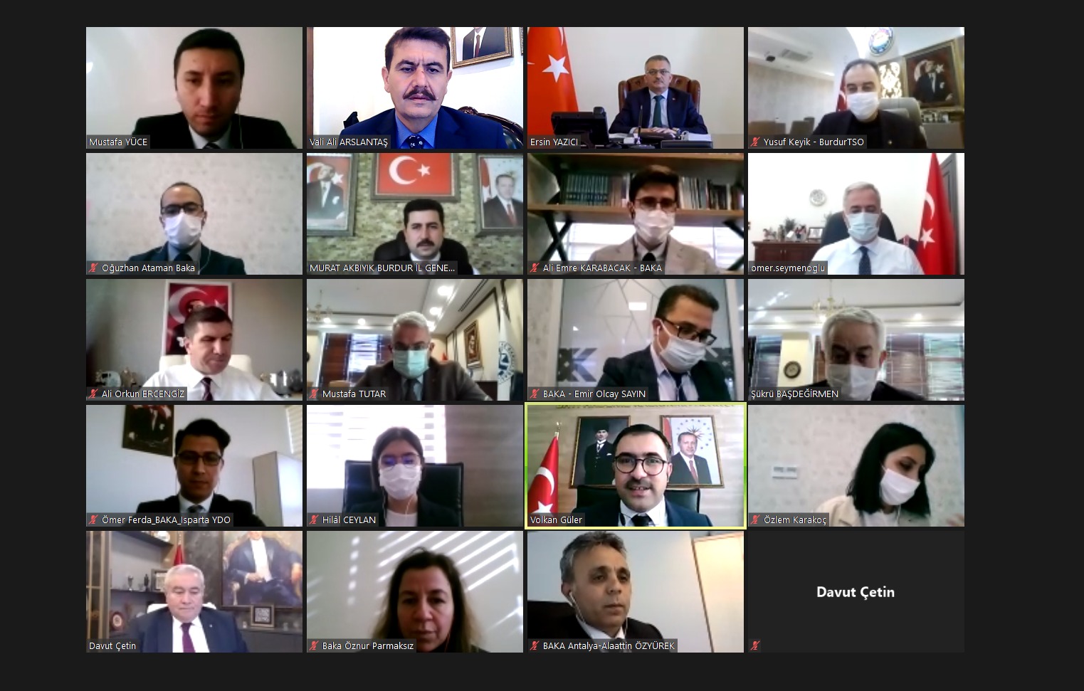 Çevrimiçi olarak gerçekleşen 2020 yılının son toplantısına Burdur Valisi Sayın Ali Arslantaş, Antalya Valisi Sayın Ersin Yazıcı, Isparta Valisi Sayın Ömer Seymenoğlu, Burdur Belediye Başkanı Sayın Ali Orkun Ercengiz, Isparta Belediye Başkanı Sayın Şükrü Başdeğirmen, Burdur İl Genel Meclisi Başkanı Murat Akbıyık, Burdur Ticaret ve Sanayi Odası Başkanı Yusuf Keyik, Antalya Ticaret ve Sanayi Odası Başkanı Davut Çetin ve Isparta Ticaret ve Sanayi Odası Başkanı Mustafa Tutar katıldı.