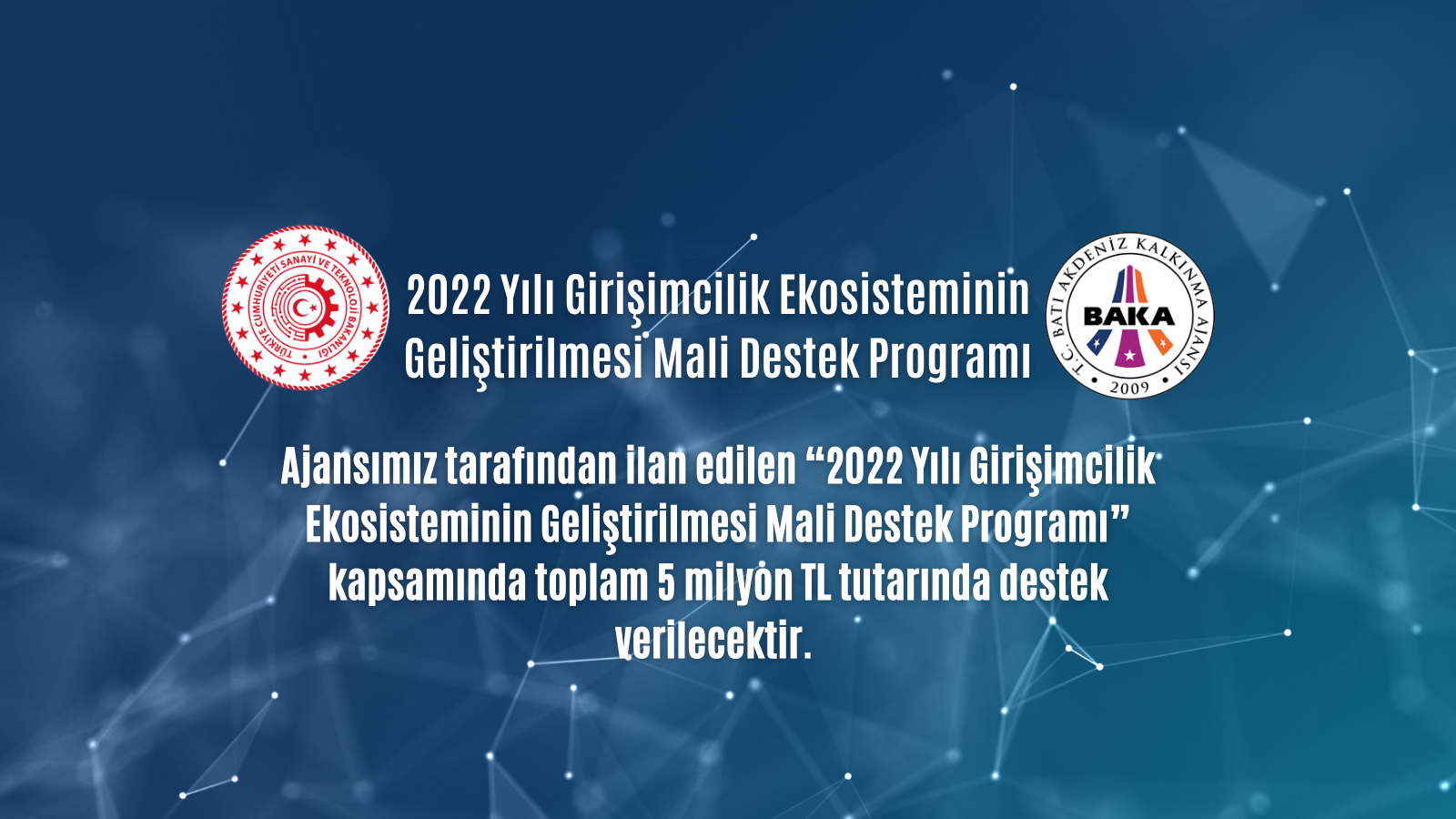 T.C Sanayi ve Teknoloji Bakanlığı koordinasyonunda, faaliyetlerini sürdüren Batı Akdeniz Kalkınma Ajansı (BAKA) ‘Girişimcilik Ekosisteminin Geliştirilmesi Mali Destek Programı’ başlattı. Program kapsamında toplam 5 milyon TL tutarında mali destek verilecek.