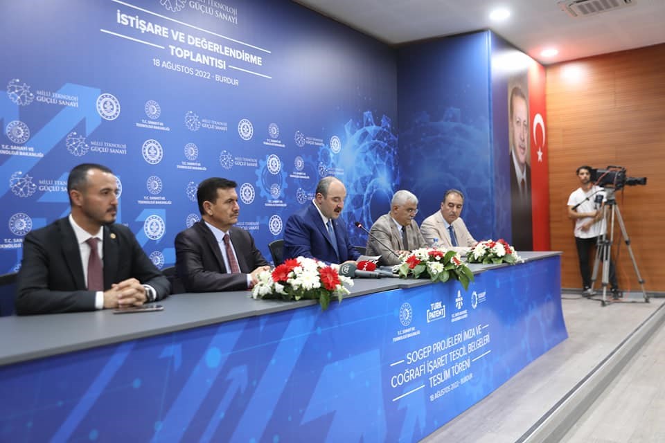 Sanayi ve Teknoloji Bakanı Mustafa Varank Burdur programı kapsamında Burdur İl Özel İdaresi Meclis Salonunda düzenlenen Sosyal Gelişmeyi Destekleme Programı (SOGEP) projeleri imza ve coğrafi işaret tescil belgeleri teslim törenine katıldı.