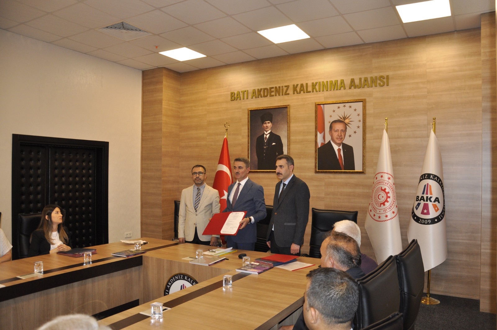 Açılış konuşmasının ardında BAKA Genel Sekreteri Volkan Güler ve Isparta İl Tarım ve Orman Müdürü Eyüp Adıgüzel tarafından proje protokolü imzalandı.