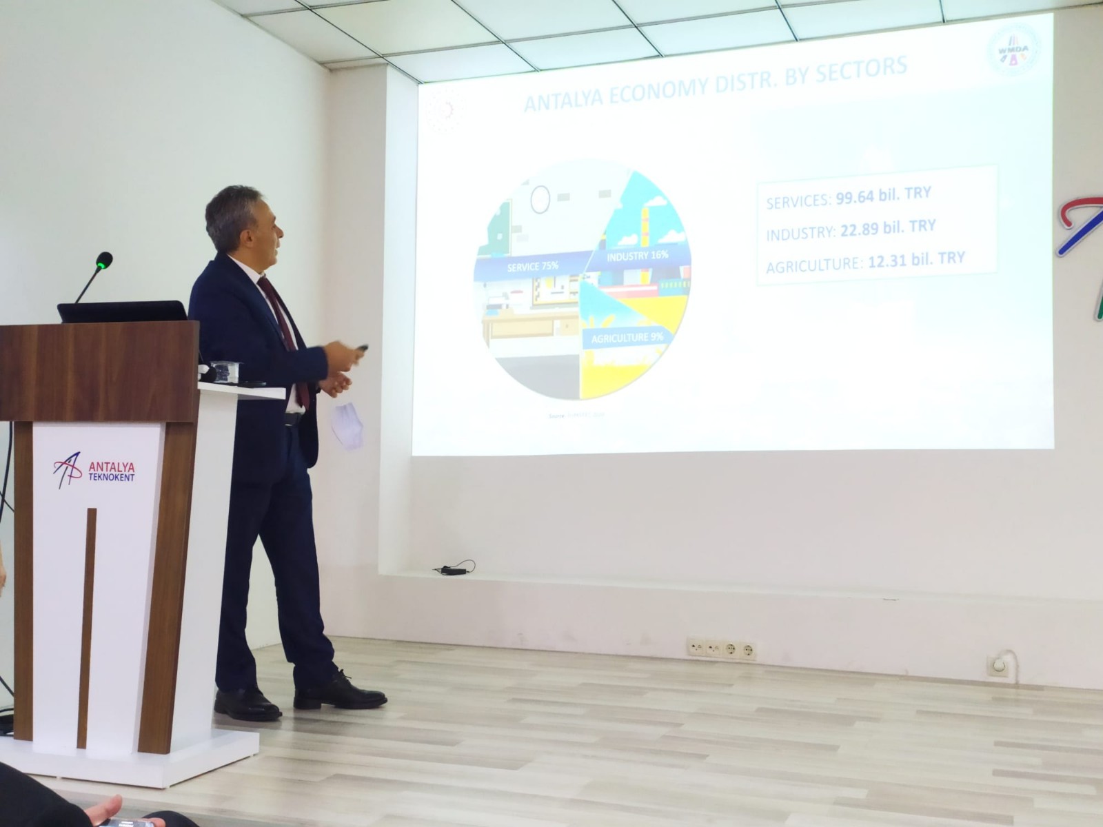 BAKA Antalya Yatırım Destek Ofisi (YDO) Koordinatörü Alaattin Özyürek gelen yabancı heyete Antalya’nın Tarım ve Gıda Sektörü hakkında bir sunum yaptı. Ayrıca Akdeniz Üniversitesi Fen Bilimleri Enstitüsü Müdürü Prof. Dr. Orhan Özçatalbaş ve Antalya Teknokent Genel Müdürü İbrahim Yavuz kendi kurumlarının çalışmaları hakkında bilgilendirme yaptı. Programın son bölümünde, Antalya Teknokent bünyesinde faaliyet gösteren tohumculuk firmalarının tesisleri ziyaret edildi.